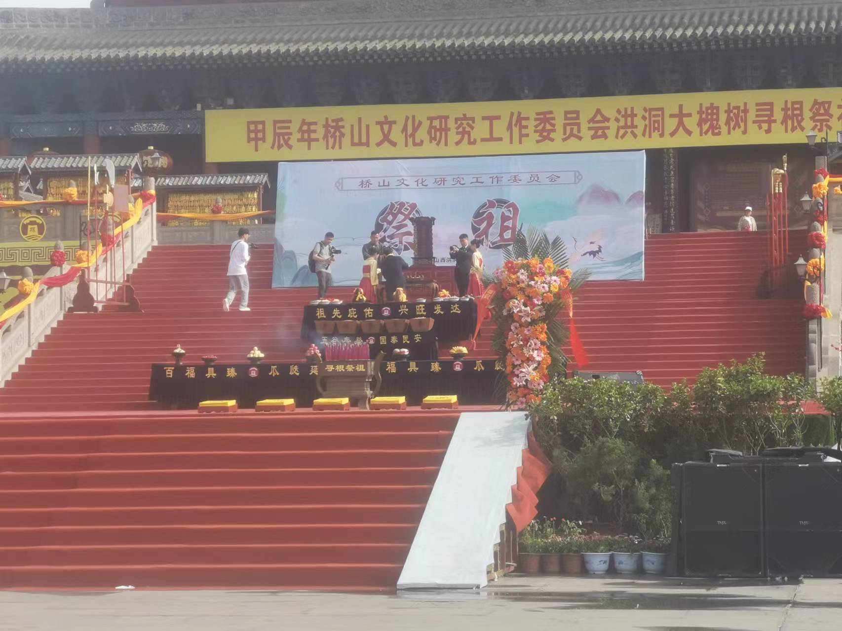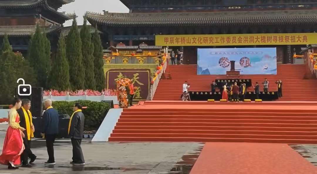 2024年4月14日上午8:10-9:10桥山文化研究工作委员会在洪洞大槐树景区大殿前面举行了祭祖仪式。