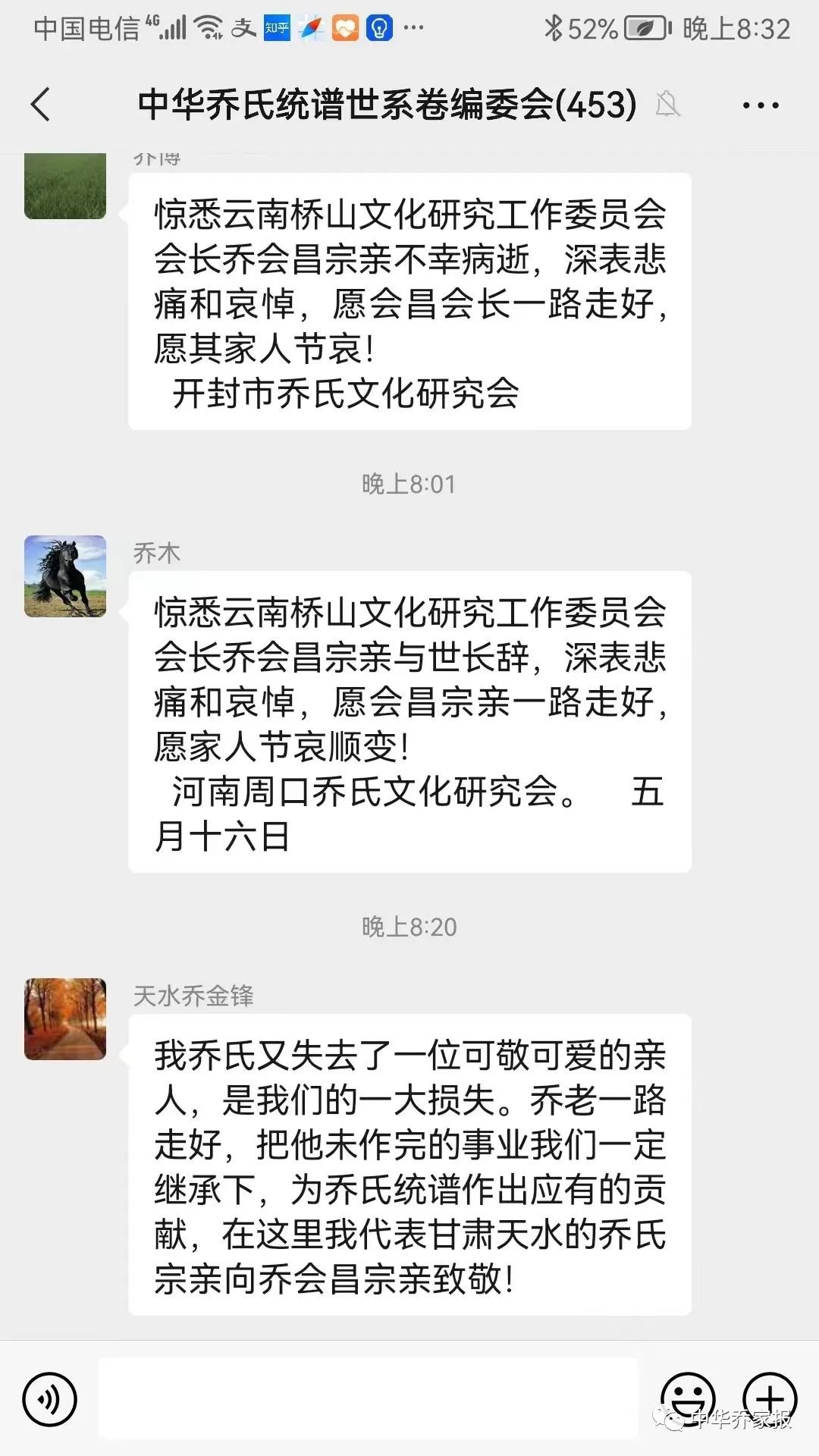 深切悼念西南桥山文化研究工作委员会常务理事长、云南桥山文化研究工作委员会理事长乔会昌宗亲逝世